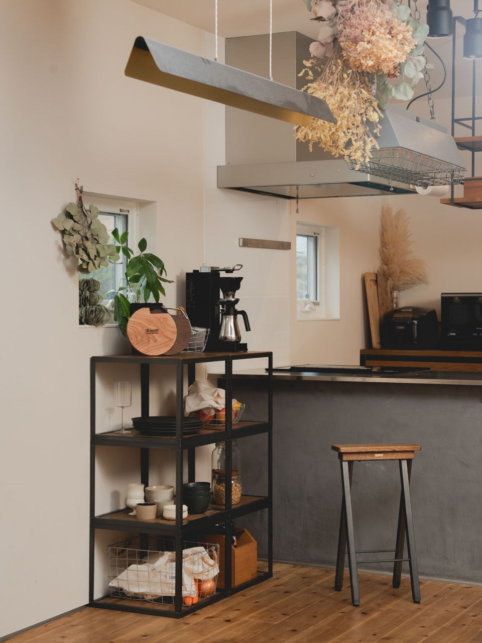 Baumのインダストリアルなアイアン家具にぴったりな照明。