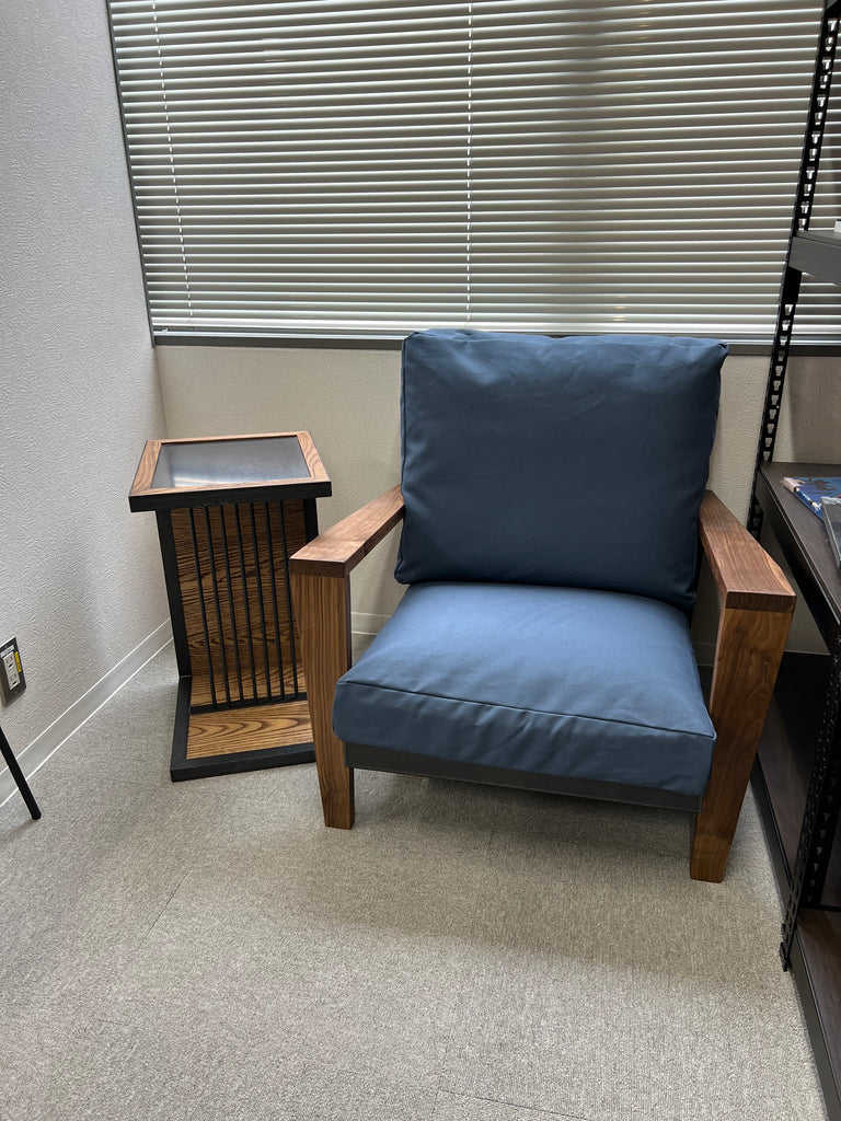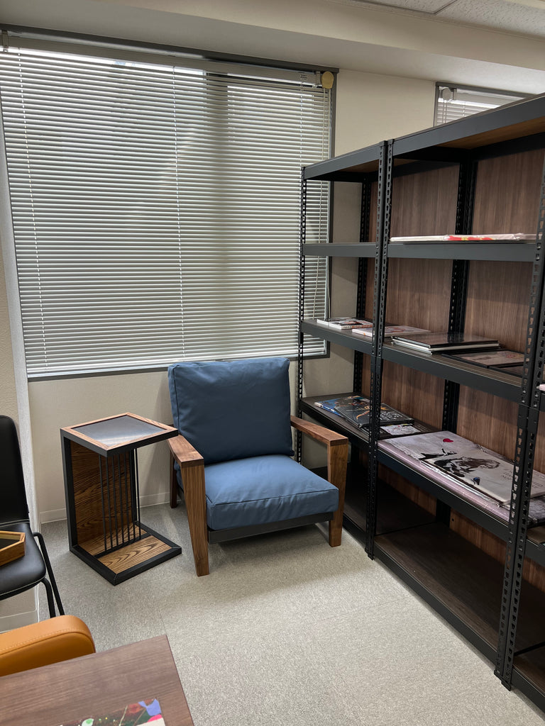 オフィス移転のタイミングで1人掛けのフレームソファとサイドテーブル、その他小物雑貨類をご注文いただきました。 オフィスに無垢の家具を置くと、特別感のある空間ができ、他とは違った印象に仕上がります。 customer:大阪府 / 株式会社共栄商会様 item:Y.T Sofa 1S / 2way Side Table / LV Low Stool material:ウォールナット / オーク / アイアン(黒皮鉄)