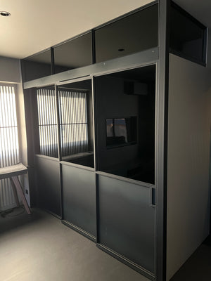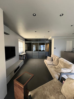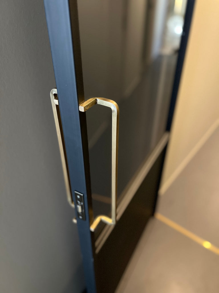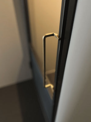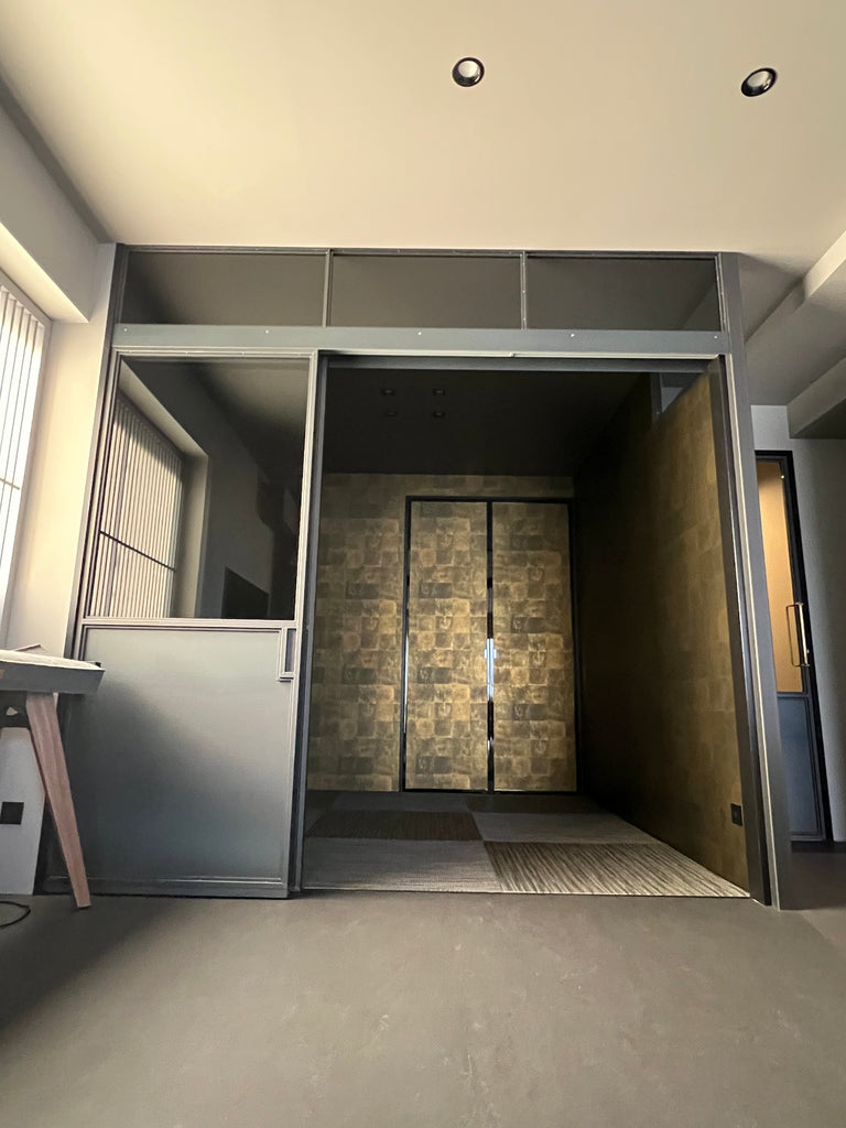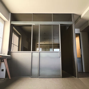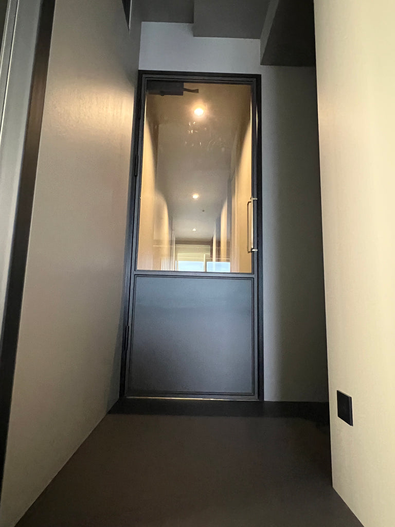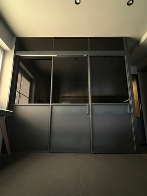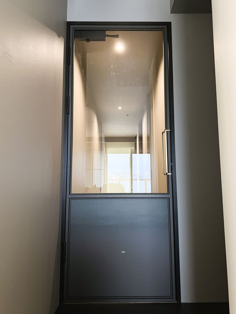先日家具を一式納品させていただいたお客様から建具のご依頼もいただき、マンションリノベーションに合わせて、和室の入り口にアイアンのスライド引き戸を製作施工させていただきました。 合わせて廊下にも開き戸を。 その他にも真鍮の棚受けなどをオーダーいただきました。 Baumでは様々なタイプのアイアンドアや室内窓などを製作させていただいております。 サイズやデザイン、仕様、細かな要望に合わせてオリジナルの建具製作が可能となっております。 customer:兵庫県 / O様 item:アイアン建具一式 material:アイアン(黒皮鉄)/ 粉体焼付クリア塗装