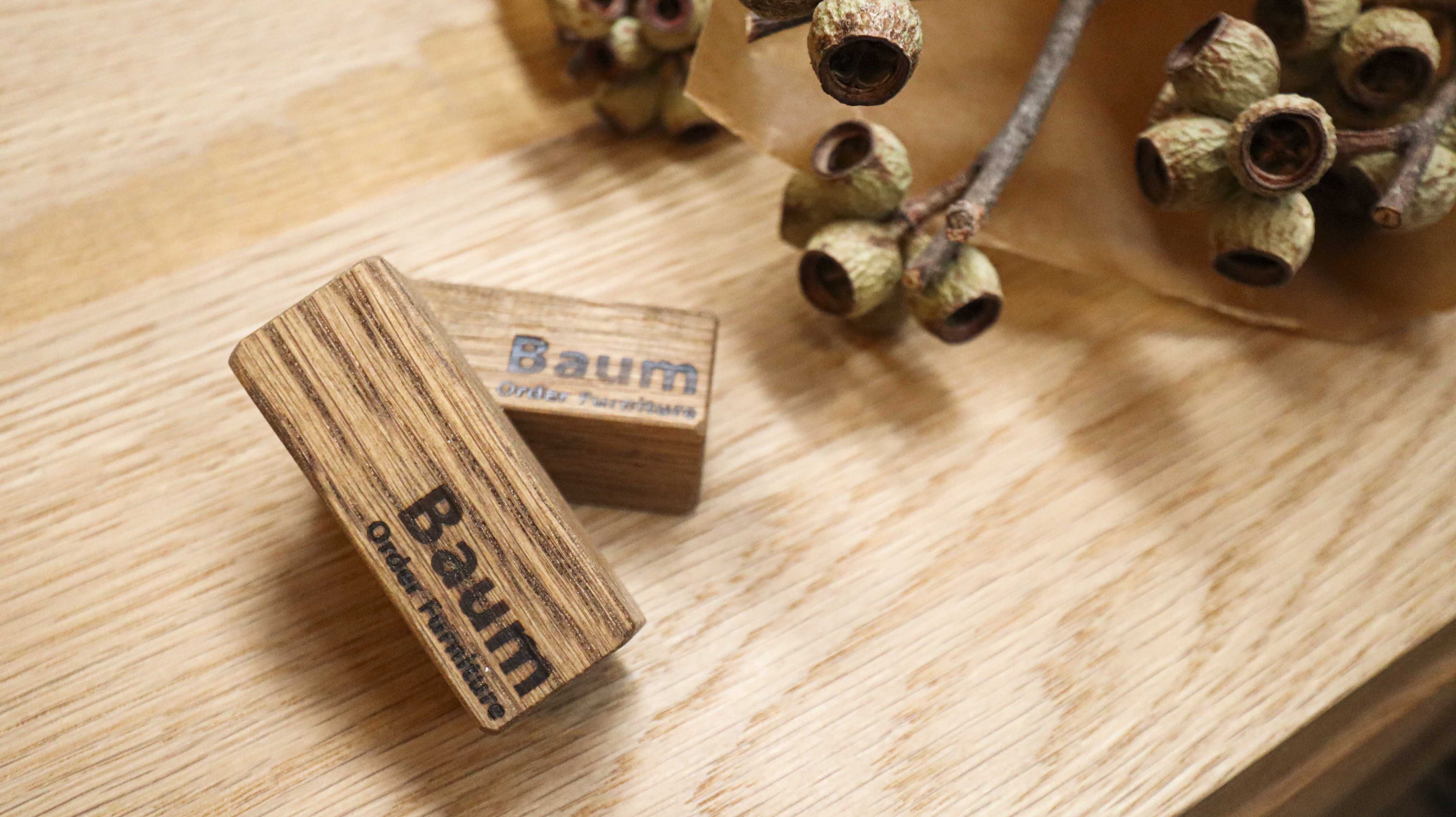 家具を作るときに出たオークの端材で作ったBaumオリジナルマグネット。
