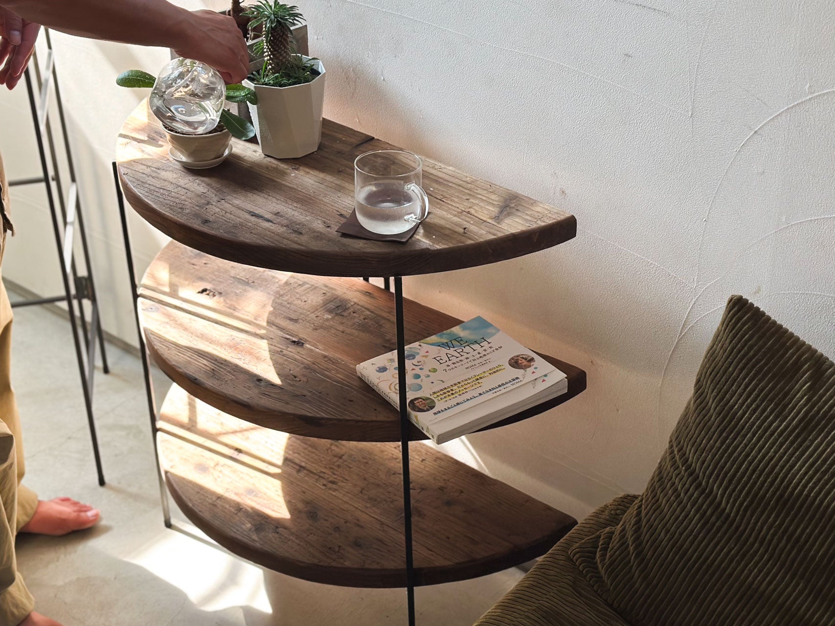テーブルとしても、シェルフとしても。壁際を彩る折りたたみシェルフ。