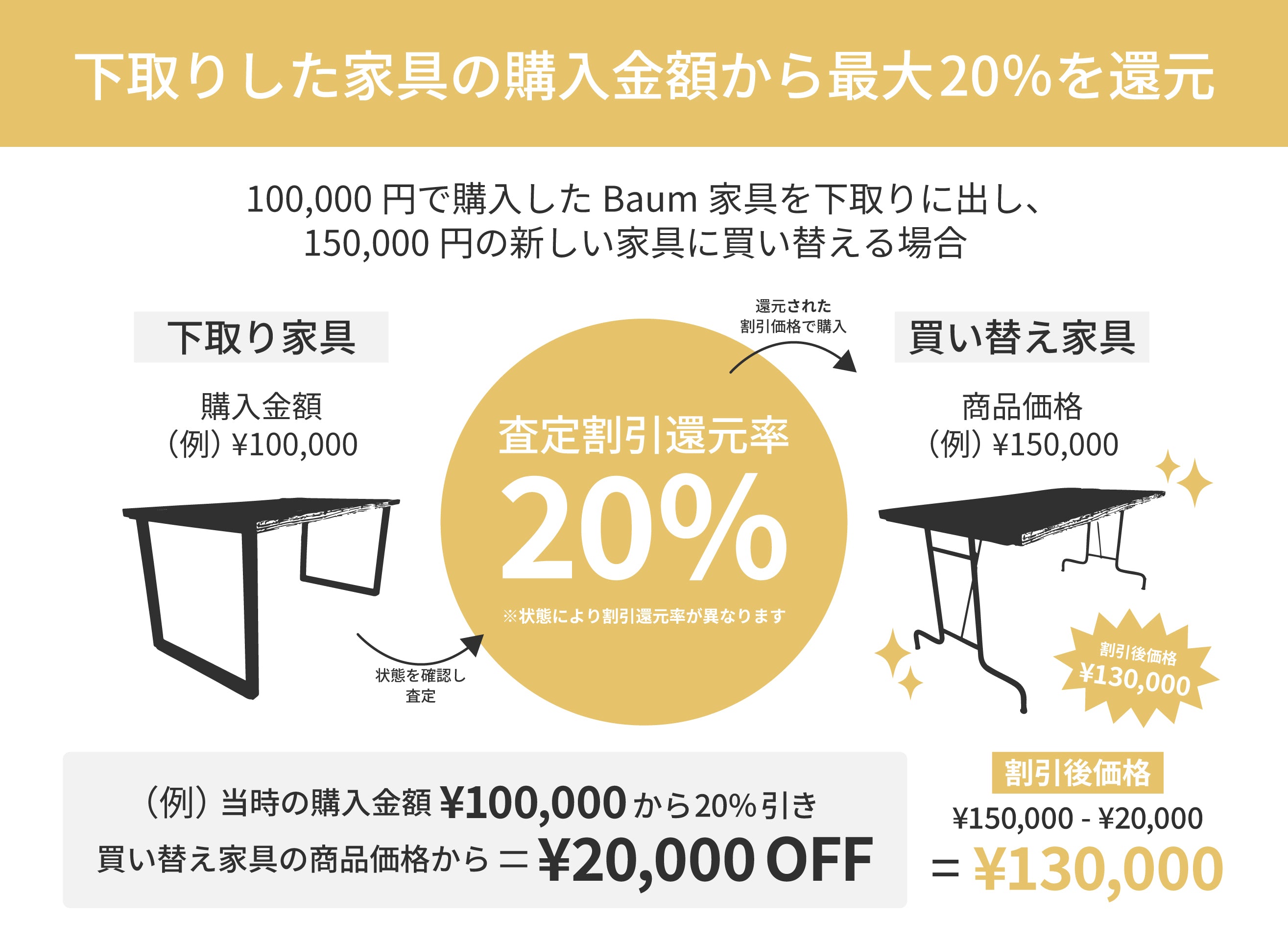 家具の当時の購入代金から査定後提示した割引率を還元し、新しい家具をご購入いただけます。